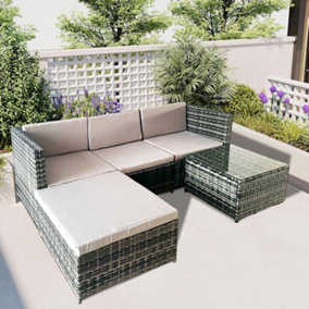 Sireck 5 Piece Wicker Patio Conversation Set Natural With Dark Gay Cushions Zqp Tby1a The Home Depot
